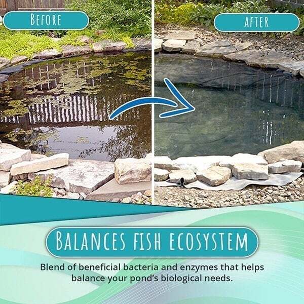 - Balances fish ecosystem - Blend of beneficial bacteria and enzymes that helps balance your pond’s biological needs.