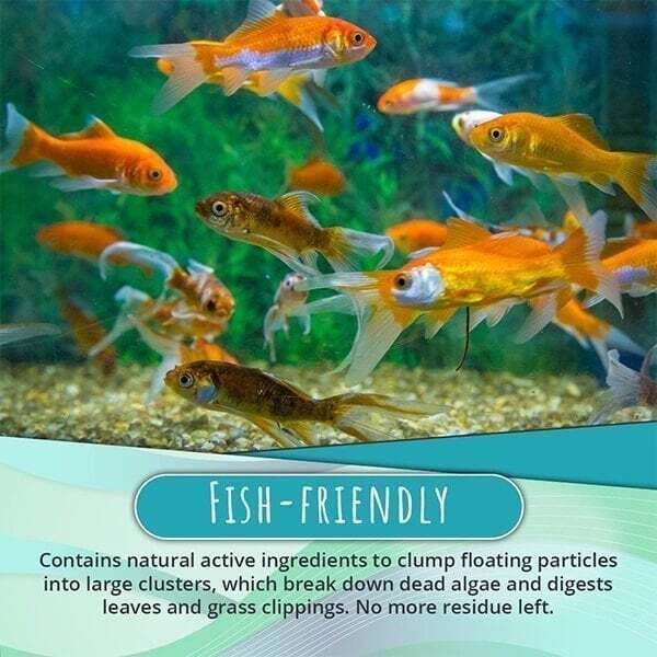 - Fish-friendly - Contains non-toxic and natural compounds that will not harm your fish and is safe for freshwater ponds, fish and pond plants, as well as the surroundings.